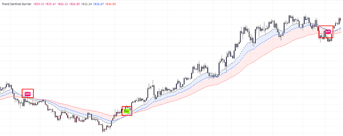 In the realm of trending markets, the Trend Sentinel Barrier proves invaluable. Its ability to pinpoint trends equips traders with a strategic advantage to enhance profit margins.